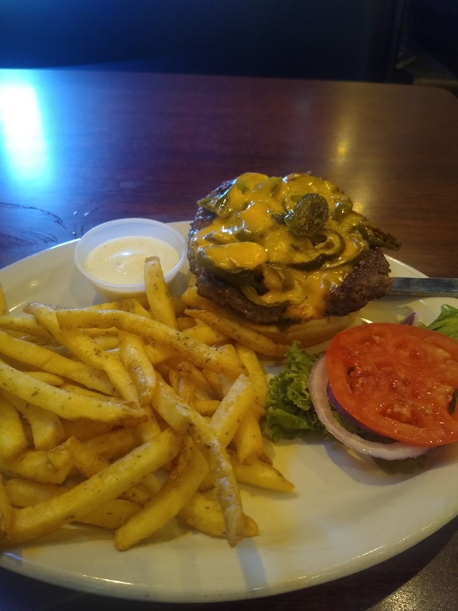 The Wrecker cheeseburger is massive and recommend ordering the buffalo chips. Friendly service but slow as we had to wait a while our food and drink refills otherwise it was a great experience.